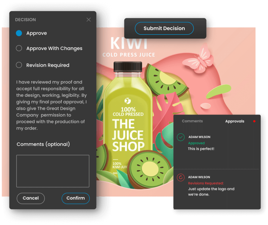 Online proofing makes approvals trackable with optional deadlines, so there are no more of those dicey “who said this was approved?” conversations.