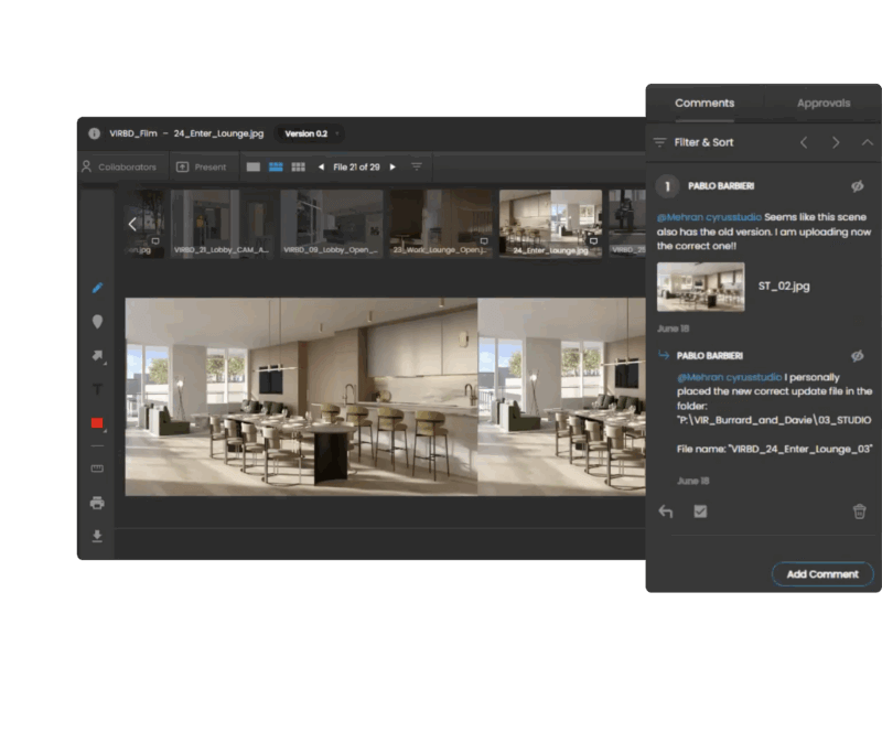 Case Studies > Elephant Skin How Online Proofing Delivers Greater Creative and Results Being a full-service agency allows teams to bring great incremental value to their clients. It allows agencies to increase services offered and billings – in both scope and scale. But with offering an expanded range of services comes the need for increased collaboration across departments and clients. Real estate content agency Elephant Skin has transformed the way real estate projects are conceived and presented. Their work builds on brand storytelling, creative intelligence, marketing strategy, film animation, interactive tours, immersive presentations, and more. To offer a great client experience, ReviewStudio has been an important asset to their organization. Elephant Skin has leaned on ReviewStudio to help streamline feedback from stakeholders and decision makers. It’s easier than ever to give feedback and leave input directly on the images, videos, 3D renderings, and other files. And it’s not just about getting any feedback. It’s about getting quality feedback that ensures accountability, enabling the team to deliver what they call “WOW Stories”. >800 Videos Reviewed per Month All Files Centralized WOW Client Experience Supporting Elephant Skin With... Clear Feedback The features necessary to get clearer feedback, with unlimited guest access, media-specific tools, and more. Compare Mode Compare versions side-by-side with synced navigation and difference highlighter. Easy Sharing Manage all feedback and approvals in a centralized, cloud-based tool, expediting review cycles. Tracking & Accountability Easily keep track of workflow stages and approval decisions to keep the whole team on the same page. "If you have a very concise, streamlined platform for feedback, it helps people do their best work. The centralized view of creative history and feedback provides accountability for everyone." Join the 1000s of Teams Using ReviewStudio Looking for Faster Proofing & Approvals? Discover the power of ReviewStudio’s intuitive proofing tools for clearer feedback and a smoother approval process. Talk to a product success specialist today. How Teams Like Yours Use ReviewStudio Los De Idea How marketing and design agency Los De Idea gathers feedback and approvals from clients using ReviewStudio. The Sign Pack How The Sign Pack uses ReviewStudio to build powerful workflows and deliver on hundreds of deliverables every day, faster than ever. Lixil How Lixil (American Standard) uses ReviewStudio to streamline collaborations and reduce meetings for creative projects. Get Started for Free – Today! Experience the efficiency of ReviewStudio’s intuitive proofing tools, designed to streamline the review and approval process. Simply sign up and get started today!